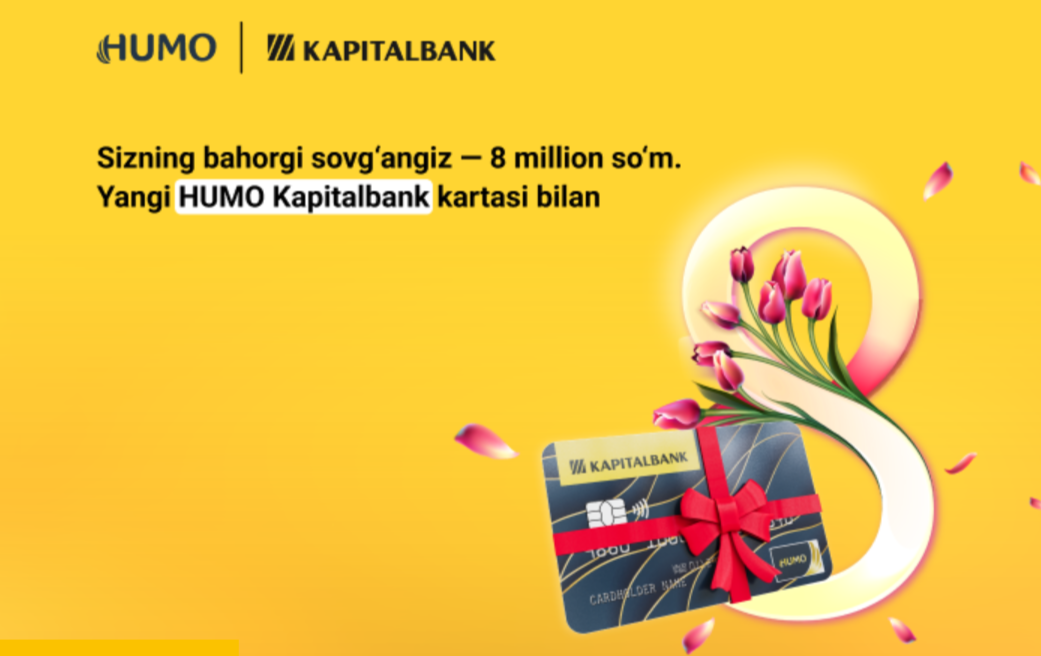 Розыгрыш состоится 11 марта в прямом эфире. В банке подчёркивают, что чем больше покупок на сумму от 300 000 сум, тем выше шансы. Всего победителями станут 33 человека. То есть общий призовой фонд составляет 264 млн сум.